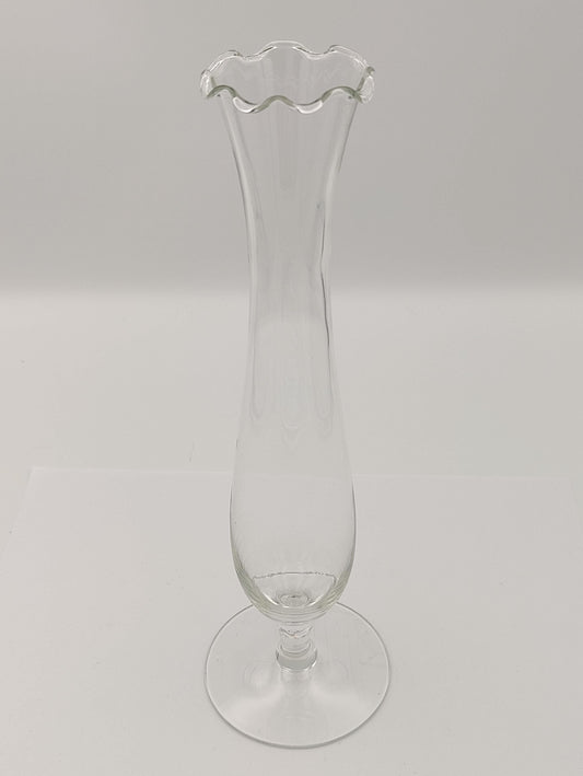Clear Cylindrical Glass Flower Bud Vase with Serpentine Edge Vintage Tall 10.5"