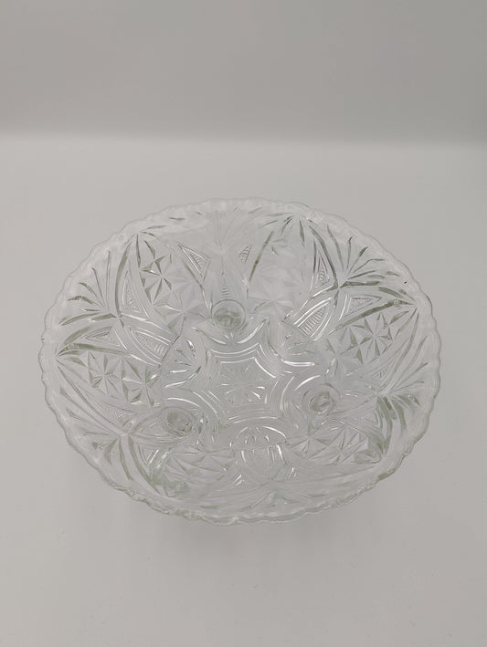 Anchor Hocking Clear Pressed Glass Tri Footed Bowl 9"D