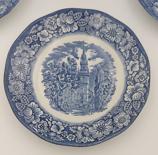 Liberty Blue Historic England Colonial Scene: "Old North Church" - Blue and White - 4 P...