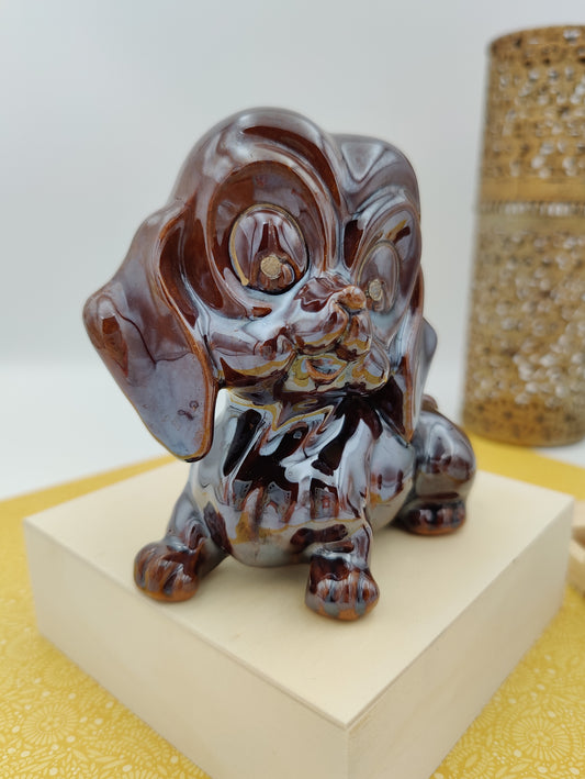 Brown Dog and Pup Ceramic Japan Pair, No Eyes