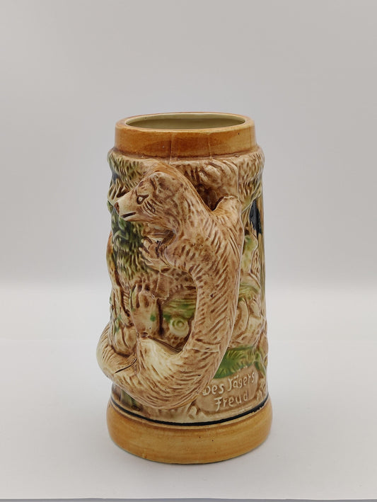 7" German Hunters Stein Handmade 3D Art Bear Handle